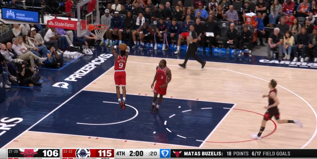 ——对阵尼克斯,28分7篮板1助攻,投篮20中9